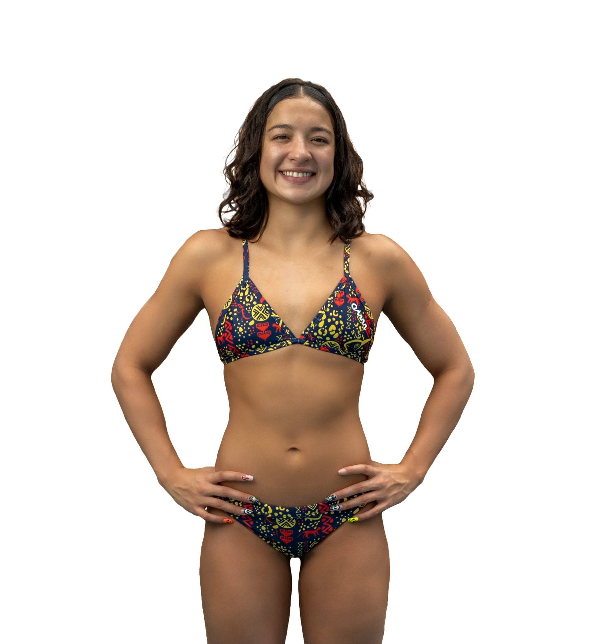 Top con cobertura mínima con estampado "Aborigen" original de la marca OMAR PINZON Swimwear inspirado en nuestra hermosa Colombia.