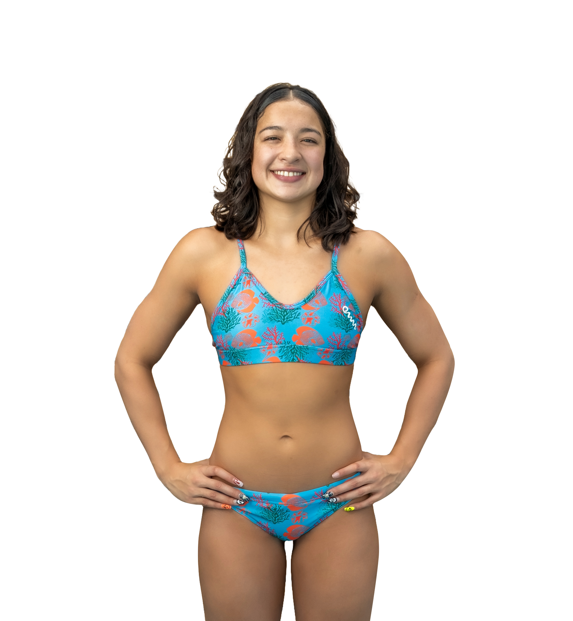 Top con cobertura mínima con estampado "Corales" original de la marca OMAR PINZON Swimwear inspirado en nuestros hermosos arrecifes de corales colombianos.