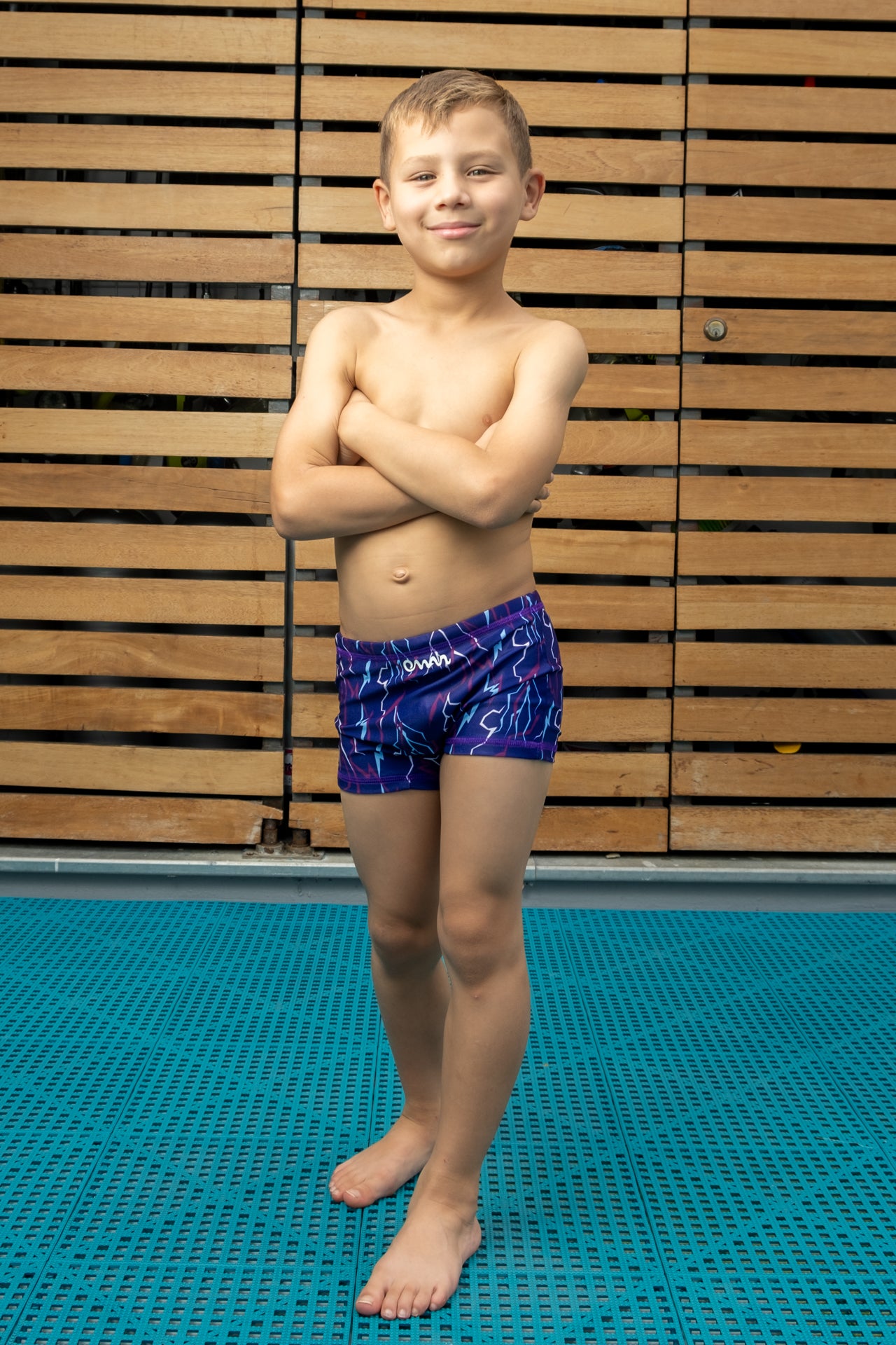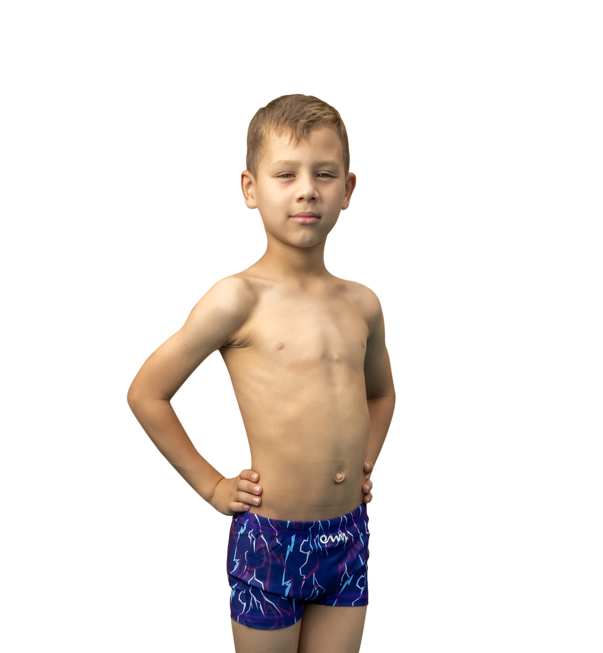 Pantaloneta de niño diseñada para competir y entrenar, con estampado "Tormenta" original de la marca OMAR PINZON Swimwear inspirado en la majestuosidad de la fuerza de una tormenta.